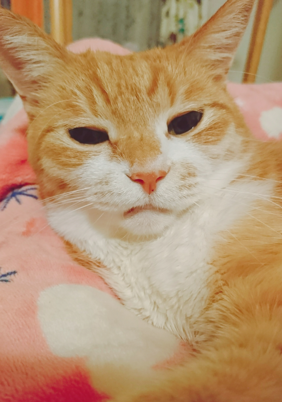 まじで泣きそうな顔で毛づくろいしていた。