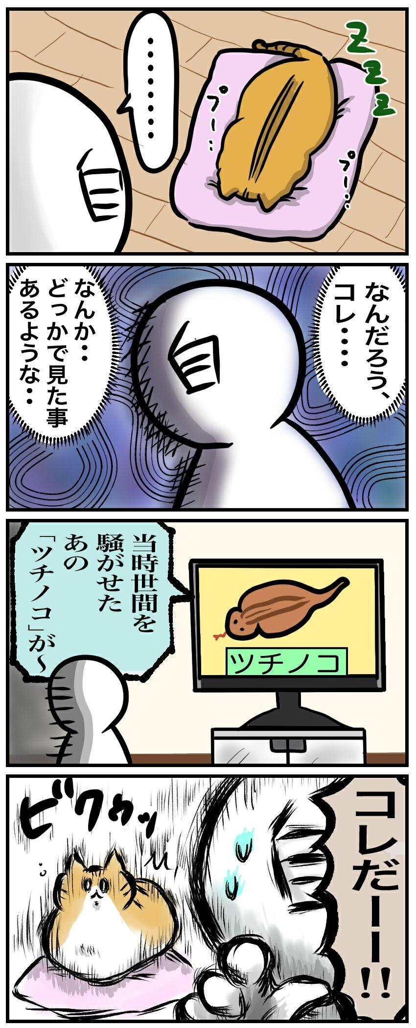 うちの猫は茶色い色味も相まって、よりツチノコ感アップ。