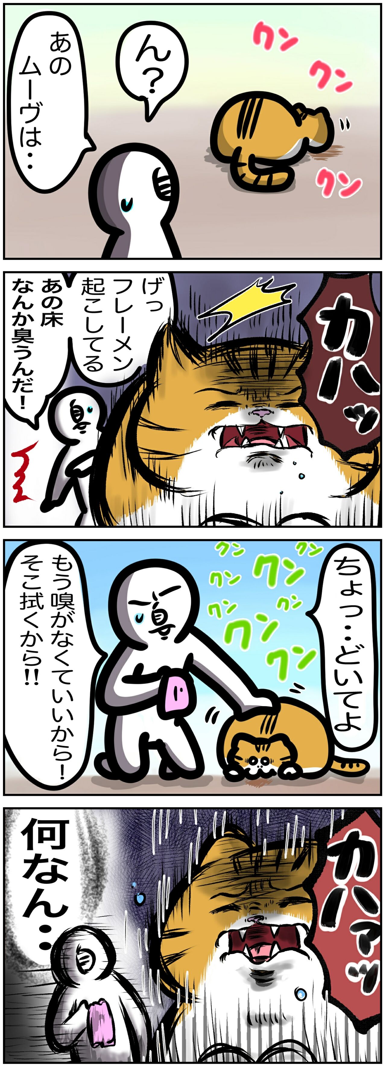 臭いスポットをお知らせする汚臭探知犬(猫)として一役買ってくれているので、まあ助かるんですけどね。