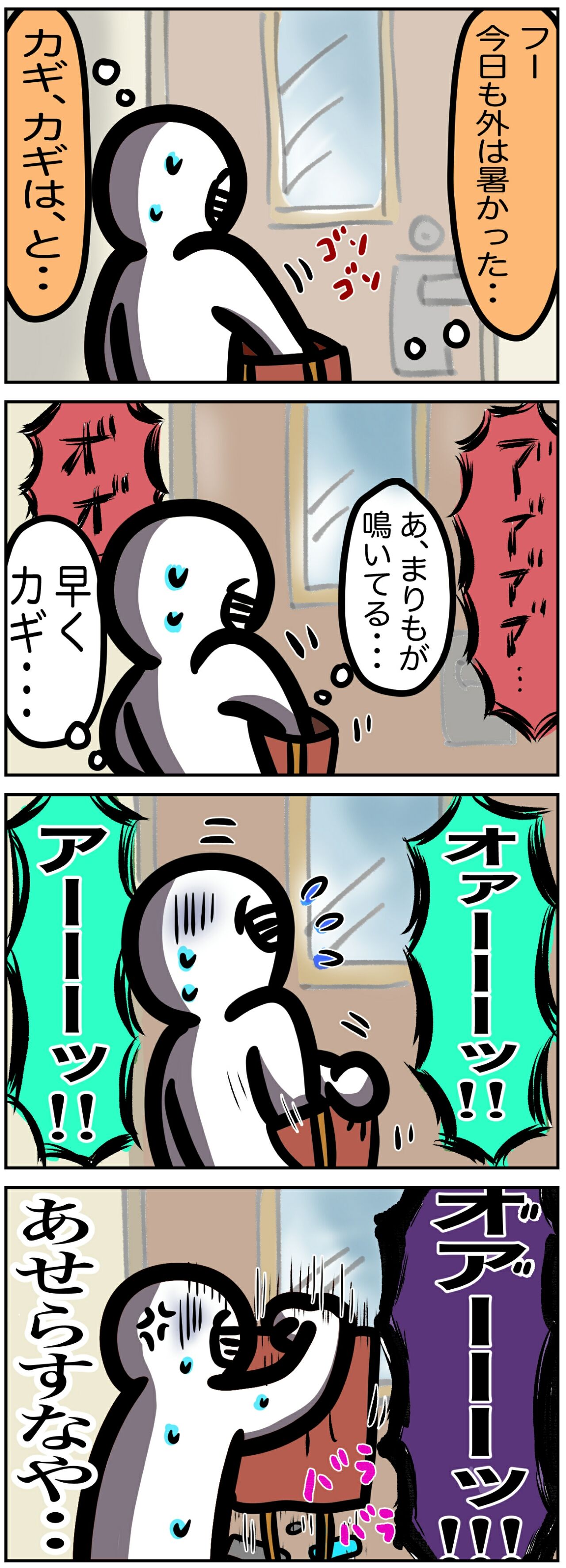 これで慌ててドアを開けると、瞳孔開いた目でパンツをくわえたまりもがお出迎えしてくれます。