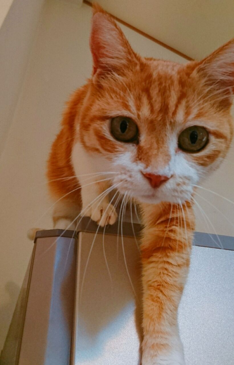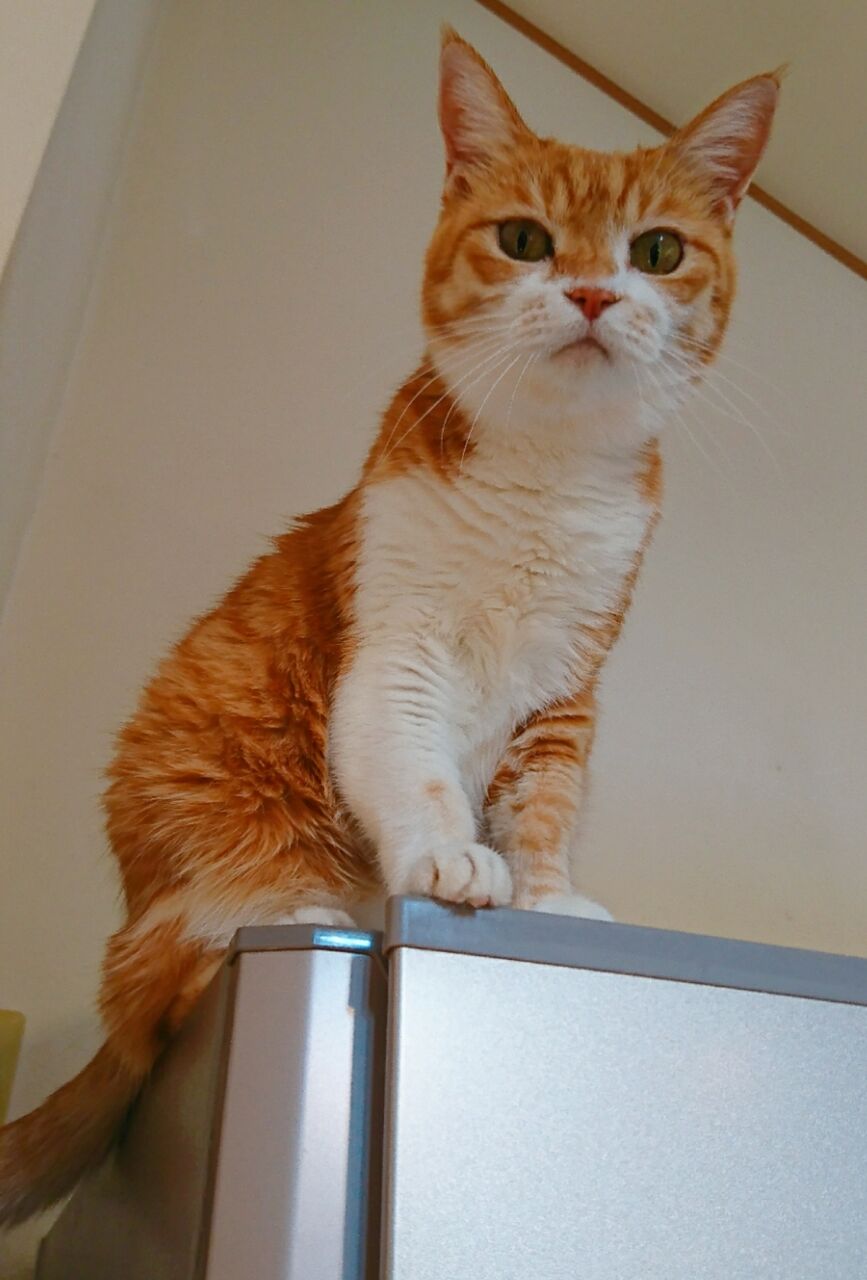 猫が冷蔵庫に乗ったときに、