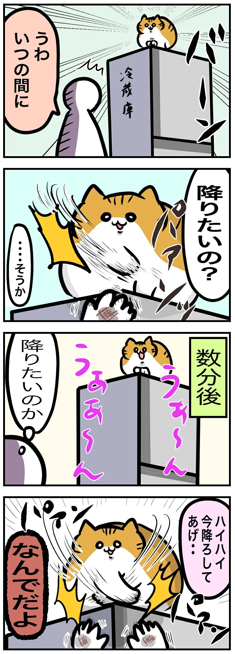 猫が冷蔵庫に乗ってる!?→降ろそうとした結果・・
